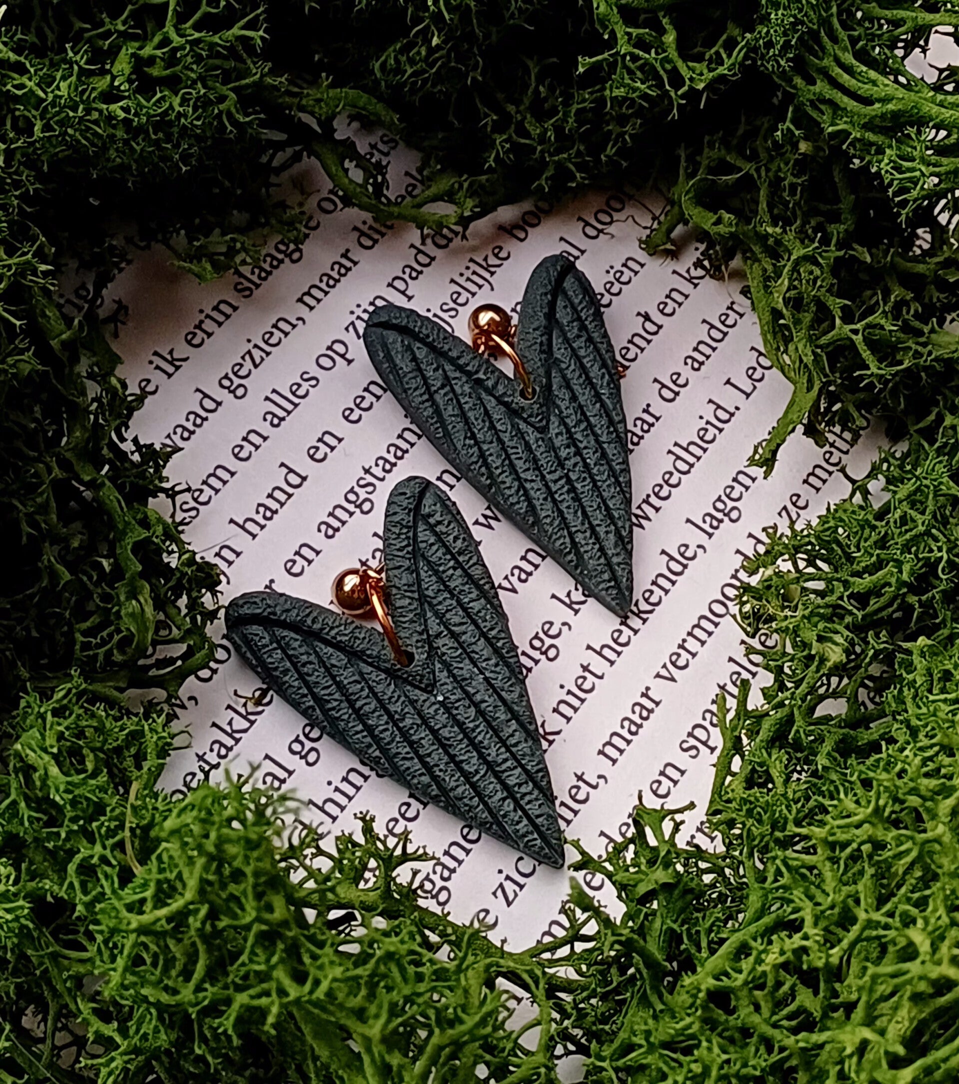 Handgemaakte oorbellen van polymeerklei. Lichtgewicht, uniek en met liefde met de hand gemaakt. De gouden details geven een warme en elegante uitstraling.