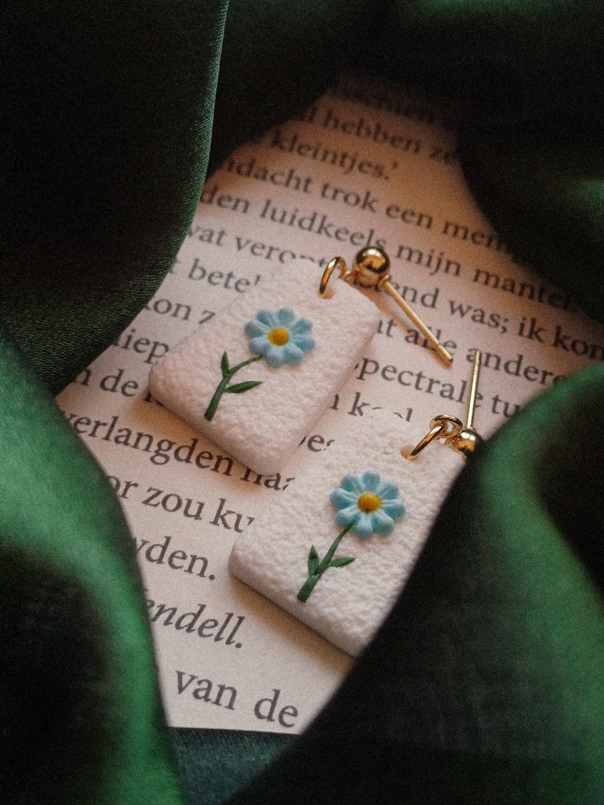 Handgemaakte oorbellen van polymeerklei. Lichtgewicht, uniek en met liefde met de hand gemaakt. De gouden details geven een warme en elegante uitstraling.