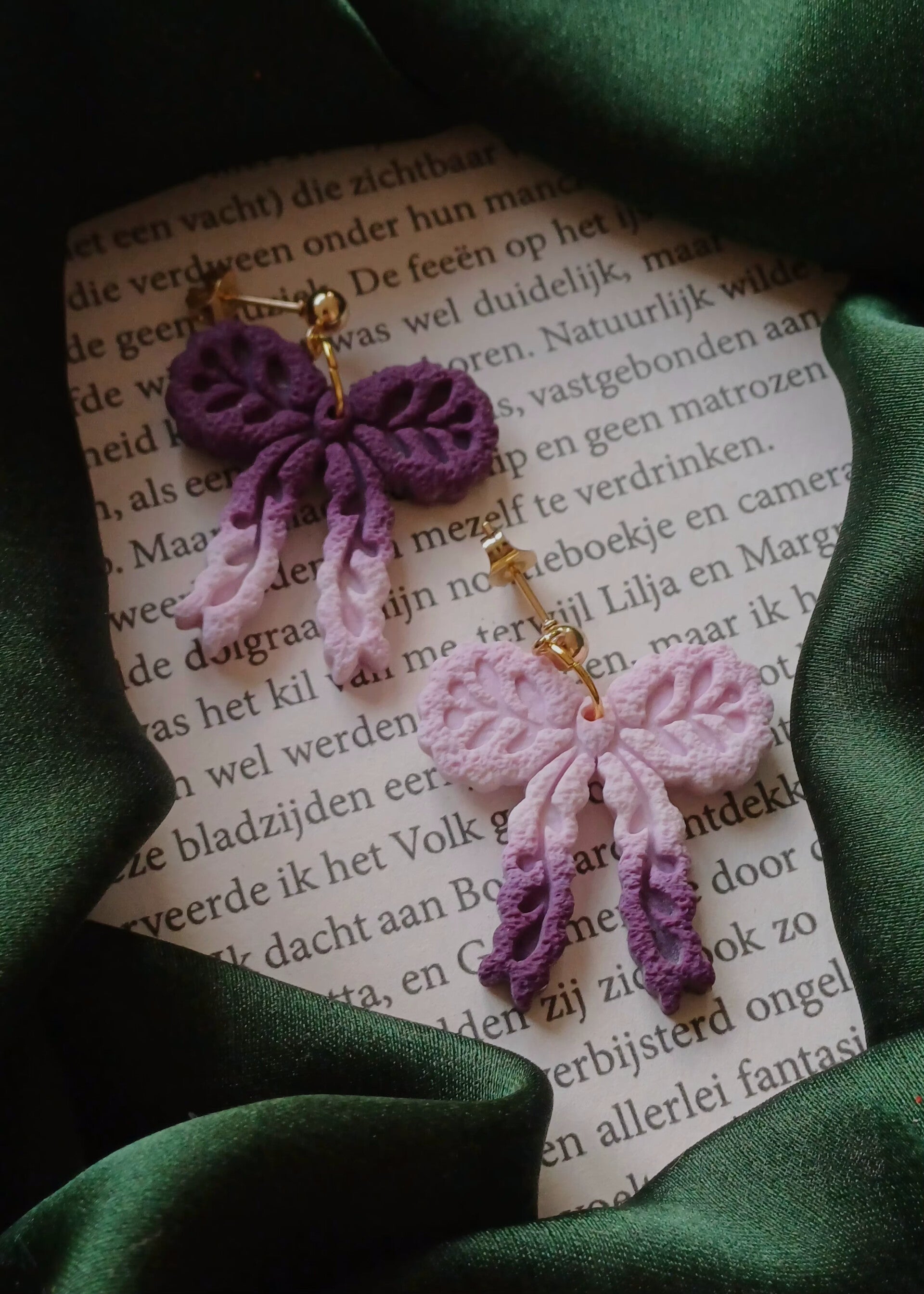 Handgemaakte oorbellen van polymeerklei. Lichtgewicht, uniek en met liefde met de hand gemaakt. De gouden details geven een warme en elegante uitstraling.