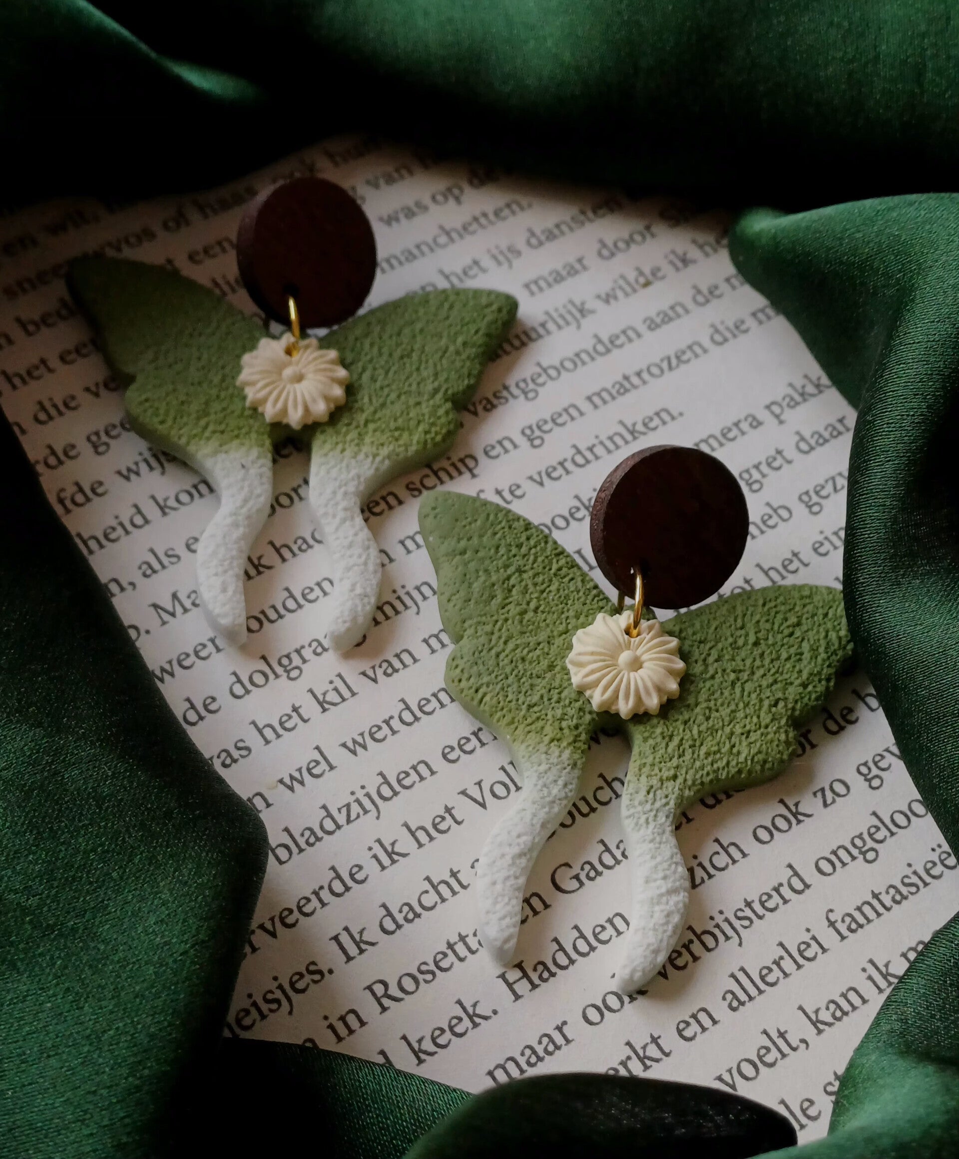 Handgemaakte oorbellen van polymeerklei. Lichtgewicht, uniek en met liefde met de hand gemaakt. De gouden details geven een warme en elegante uitstraling.