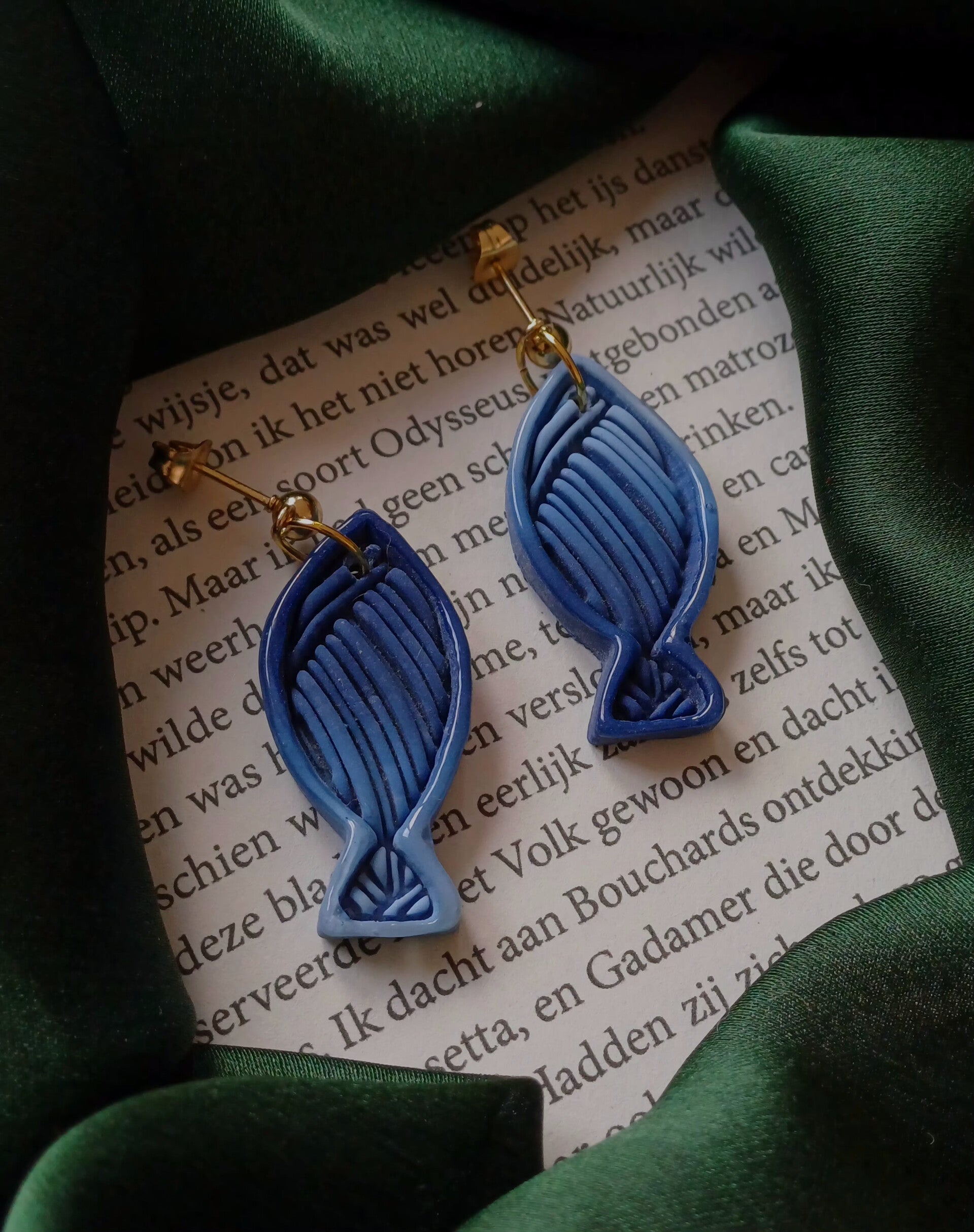 Handgemaakte oorbellen van polymeerklei. Lichtgewicht, uniek en met liefde met de hand gemaakt. De gouden details geven een warme en elegante uitstraling.