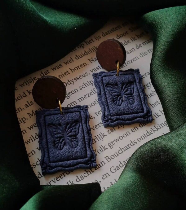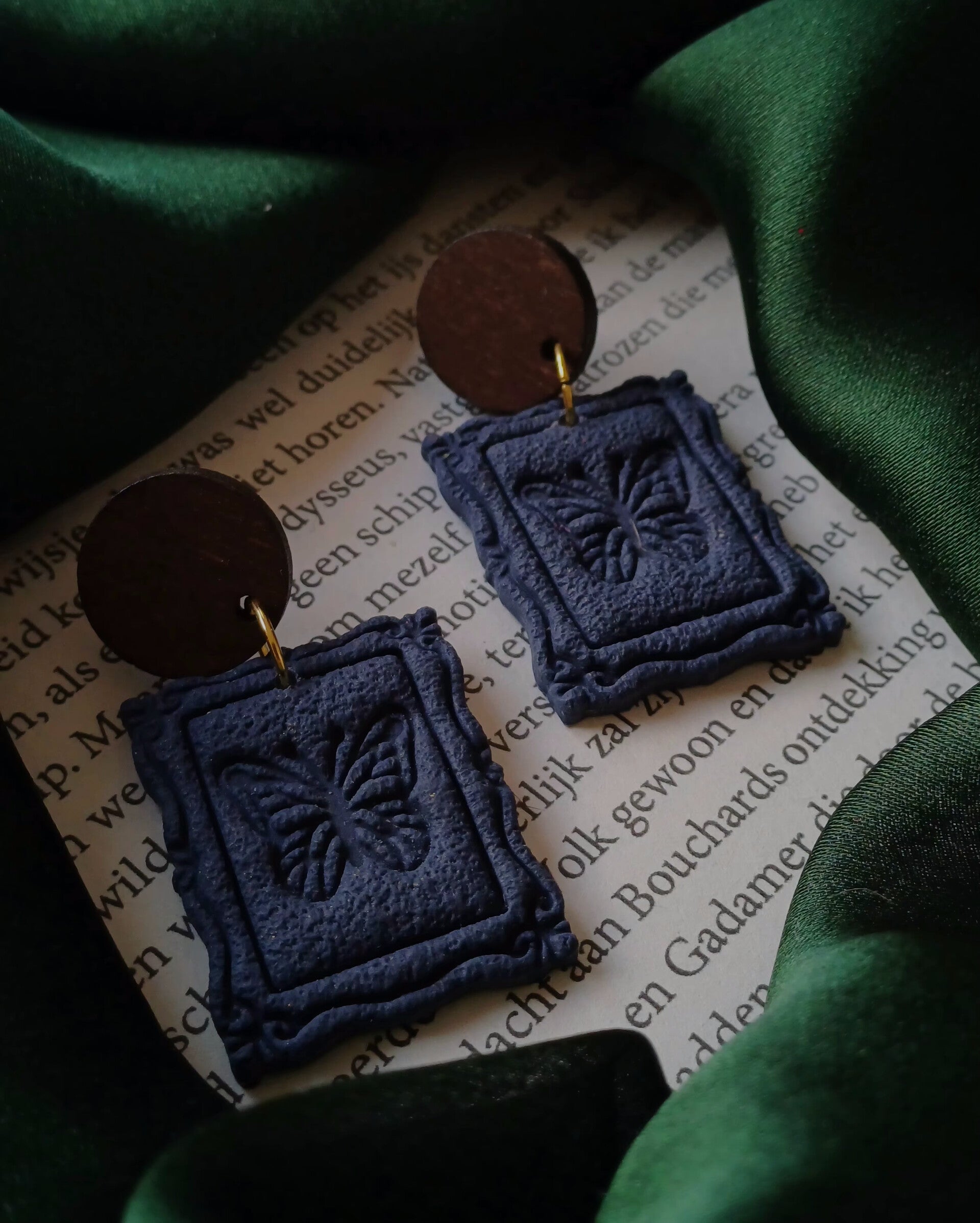 Handgemaakte oorbellen van polymeerklei. Lichtgewicht, uniek en met liefde met de hand gemaakt. De gouden details geven een warme en elegante uitstraling.