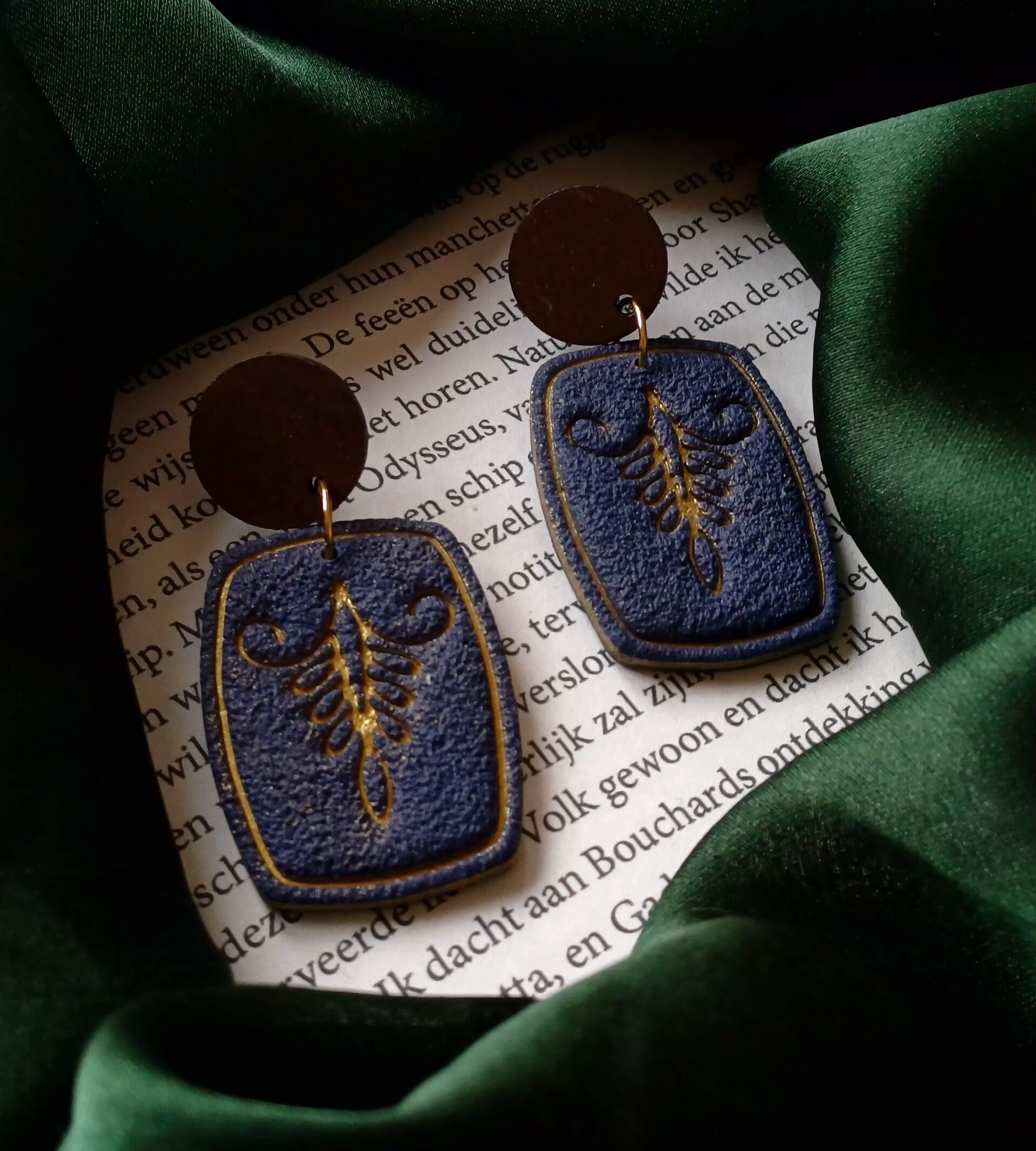 Handgemaakte oorbellen van polymeerklei. Lichtgewicht, uniek en met liefde met de hand gemaakt. De gouden details geven een warme en elegante uitstraling.