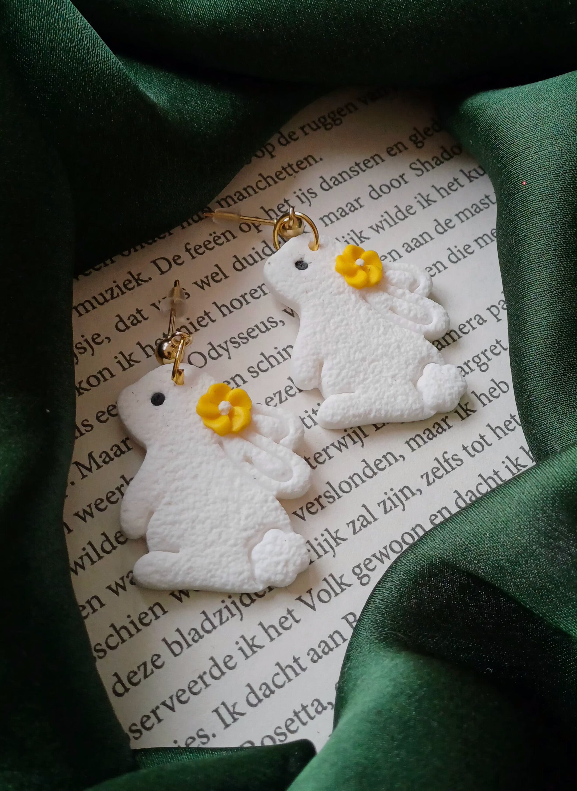 Handgemaakte oorbellen van polymeerklei. Lichtgewicht, uniek en met liefde met de hand gemaakt. De gouden details geven een warme en elegante uitstraling.