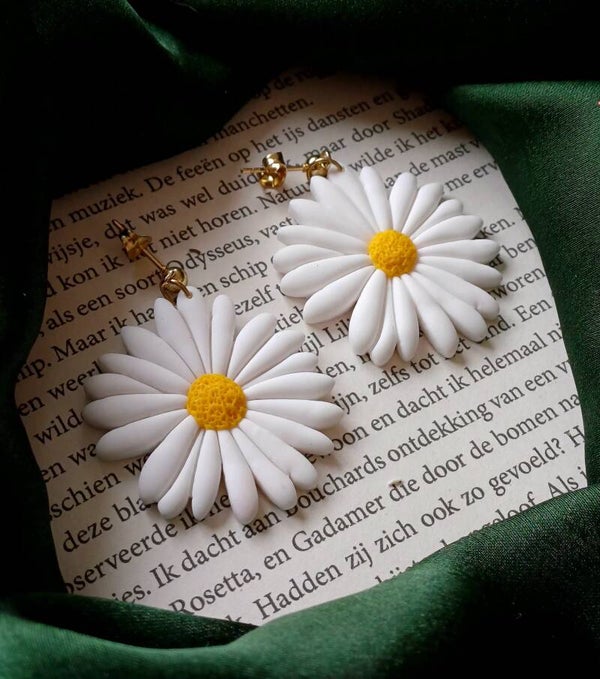Handgemaakte oorbellen van polymeerklei. Lichtgewicht, uniek en met liefde met de hand gemaakt. De gouden details geven een warme en elegante uitstraling.