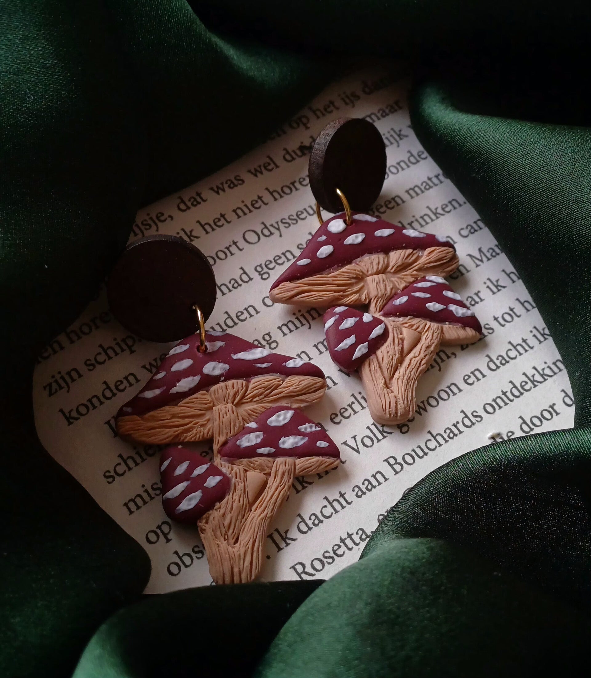 Handgemaakte oorbellen van polymeerklei. Lichtgewicht, uniek en met liefde met de hand gemaakt. De gouden details geven een warme en elegante uitstraling.