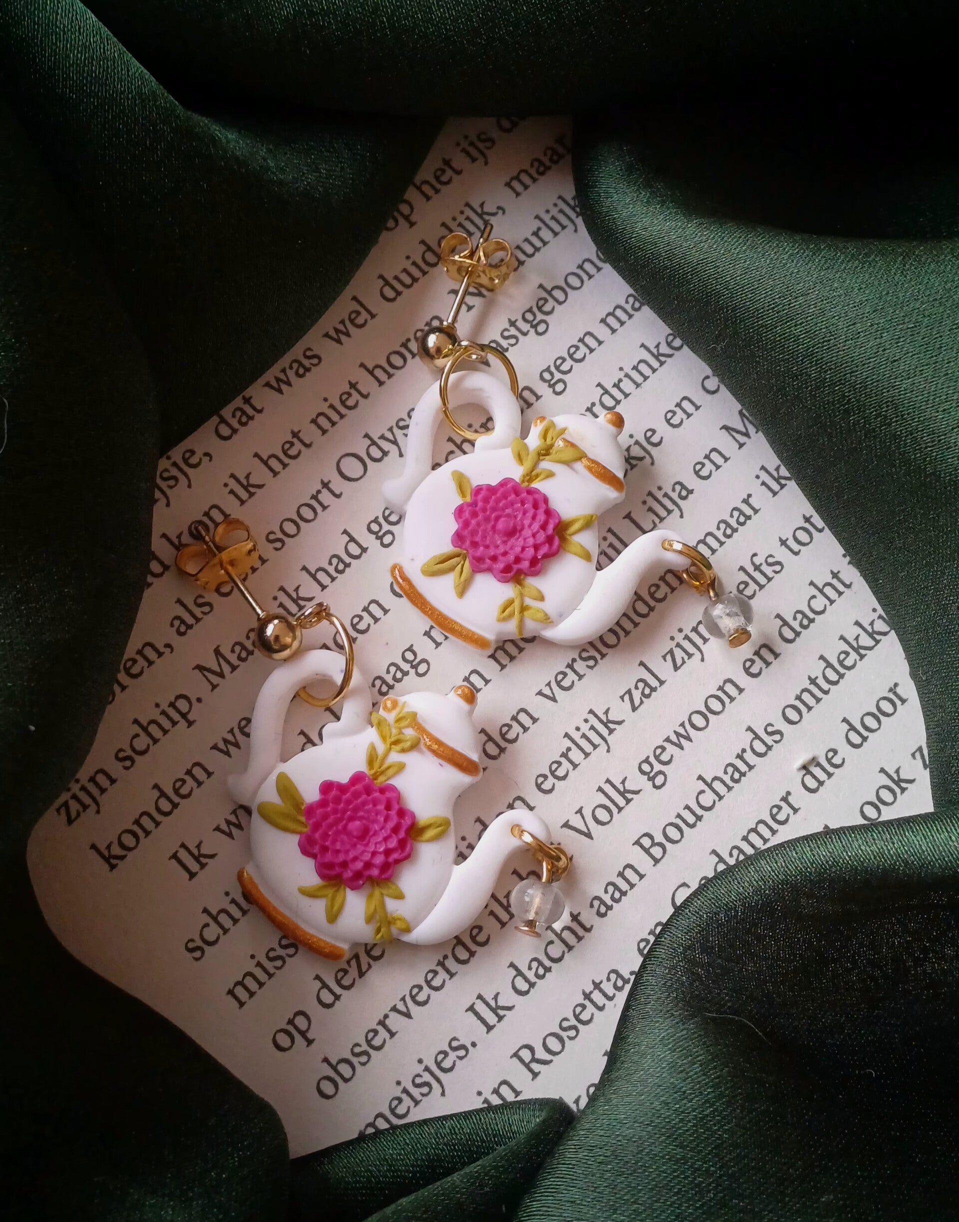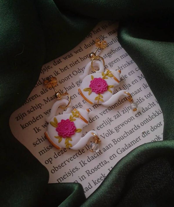 Handgemaakte oorbellen van polymeerklei. Lichtgewicht, uniek en met liefde met de hand gemaakt. De gouden details geven een warme en elegante uitstraling.