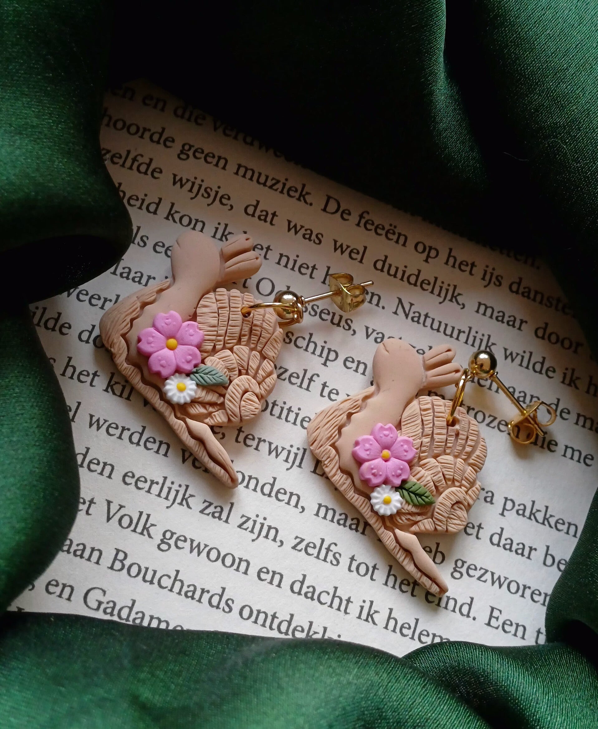 Handgemaakte oorbellen van polymeerklei. Lichtgewicht, uniek en met liefde met de hand gemaakt. De gouden details geven een warme en elegante uitstraling.