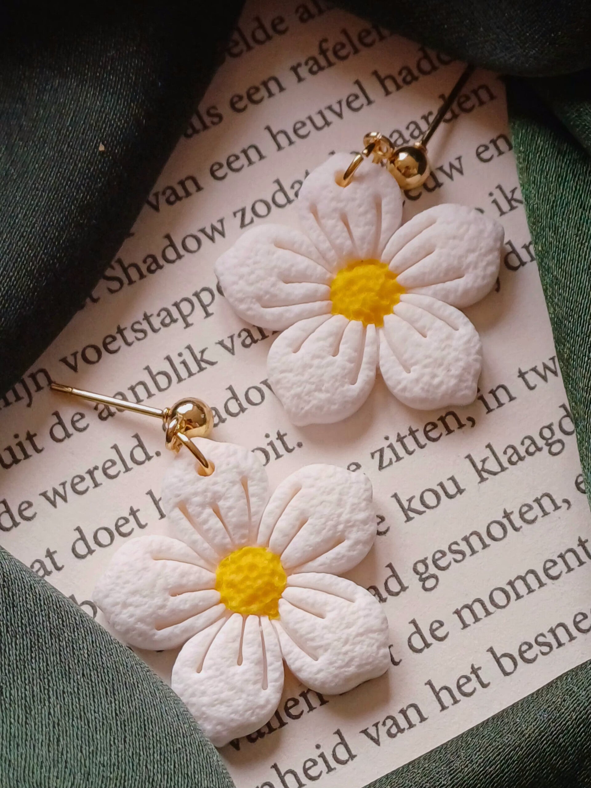 Handgemaakte oorbellen van polymeerklei. Lichtgewicht, uniek en met liefde met de hand gemaakt. De gouden details geven een warme en elegante uitstraling.