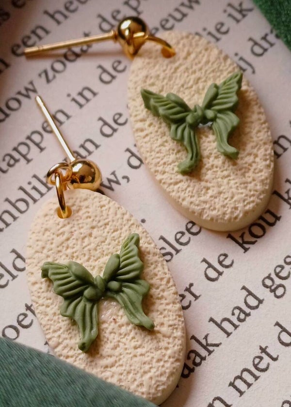 Handgemaakte oorbellen van polymeerklei. Lichtgewicht, uniek en met liefde met de hand gemaakt. De gouden details geven een warme en elegante uitstraling.
